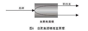 Collimation: Collimation is a reversible application of the focusing function. According to the light transmission principle of the self-focusing lens, for a 1/4-pitch self-focusing lens, when the condensed light is input from one end of the self-focusing lens, it will be transformed into parallel light after passing through the self-focusing lens. As shown in Figure 6 below: