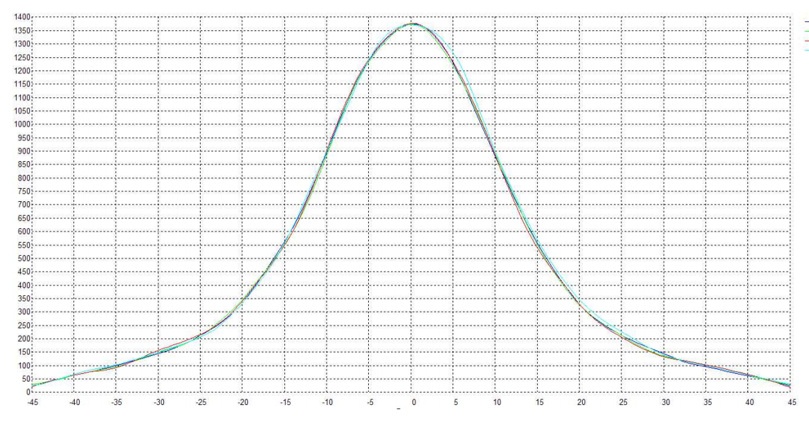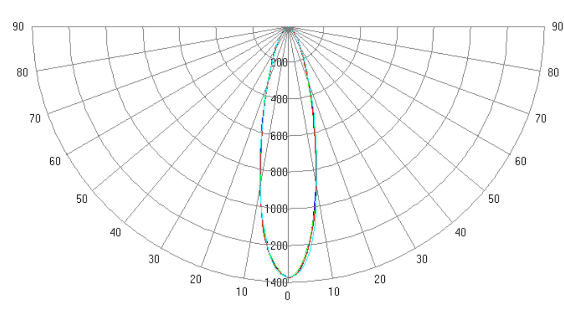最大光照度 1490 lx,未能达到客户要求 18 度,最大照度 2600 lx 的目标。