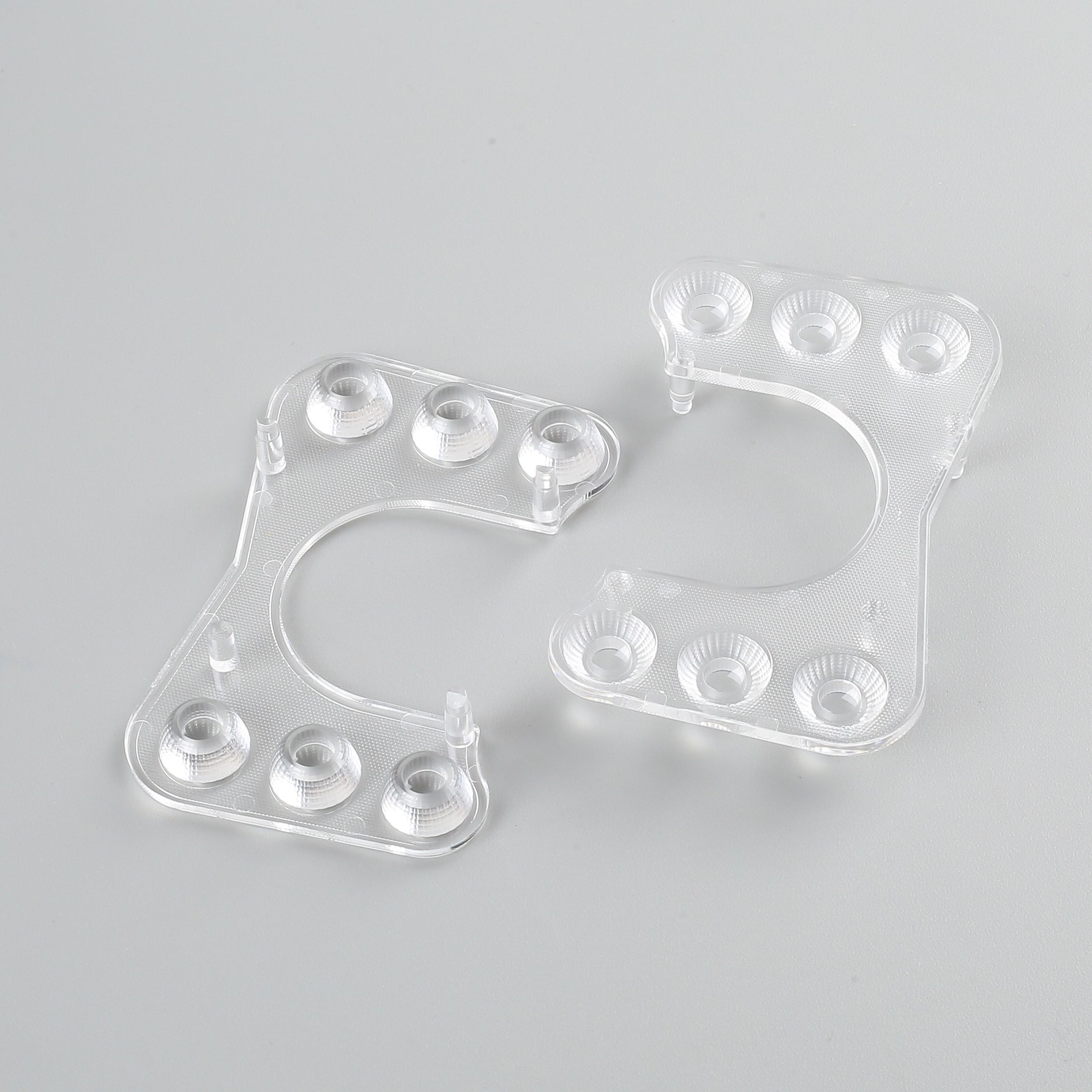 1.产品描述:出光区为磷面,光斑均匀, 非出光区为砂面,底部有4根柱子用于固定在灯板上;