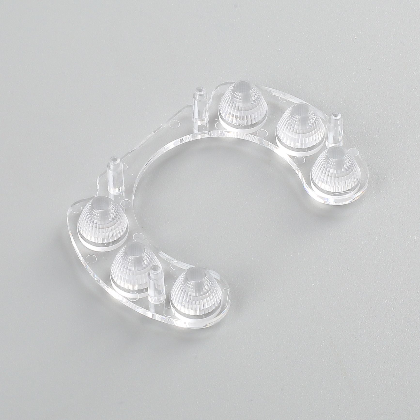 1.产品描述:出光区为磷面,光斑均匀, 非出光区为砂面,底部有4根柱子用于固定在灯板上;