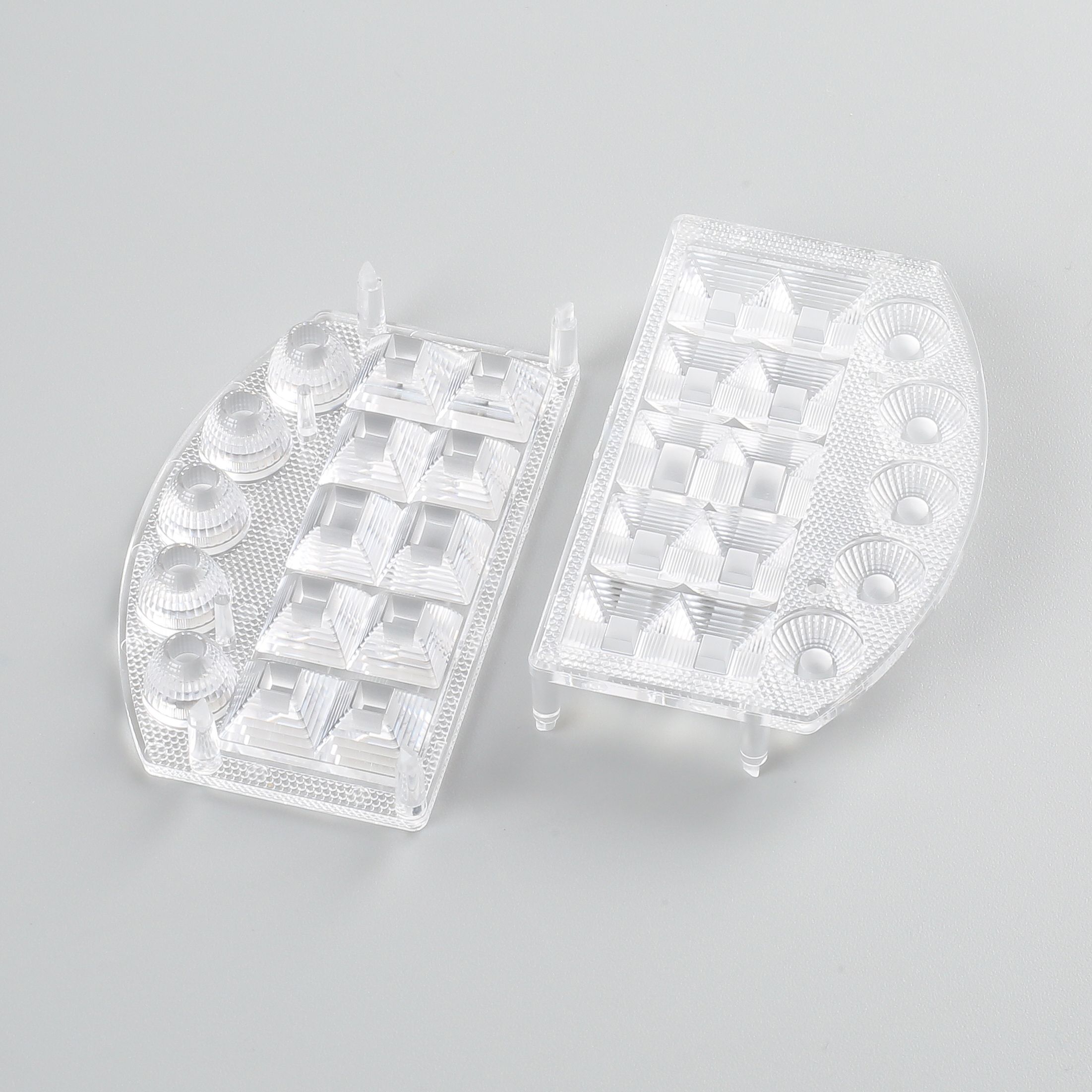 1.产品描述:出光区为磷面,光斑均匀, 非出光区为砂面,底部有4根柱子用于固定在灯板上;