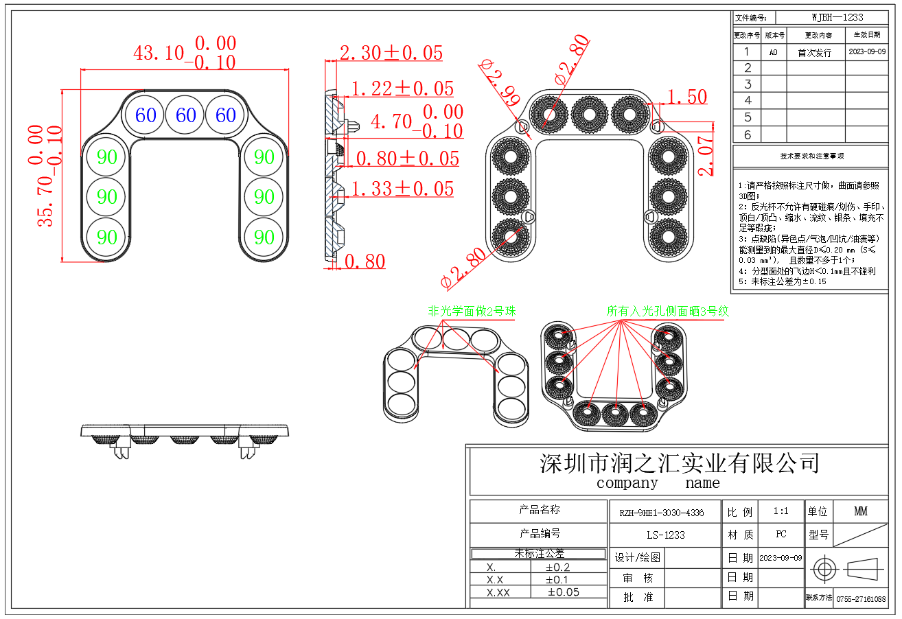 4.本产品采用高精度非球面光学加工、使用进口模具钢材、原料专用照明行业标准日本帝人PC-1250Z,